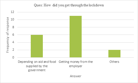 It was also interesting to note how most female domestic worker respondents said that they were asked by their husbands and other family members to stand in crowded queues and get the ration which made them more vulnerable to being infected from the virus itself.