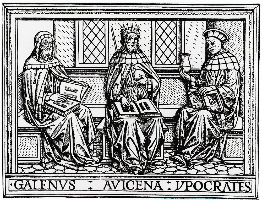 Galen (131-201) was a Greek anatomist, physician, and writer whose theories formed the basis of European medicine until the Renaissance, Avicenna, Latinisation of name of Ibn Sina (980-1037), Persian philosopher and physician, and Hippocrates, (460-370 BC), called "the Father of Medicine". Credit: Wikimedia Commons