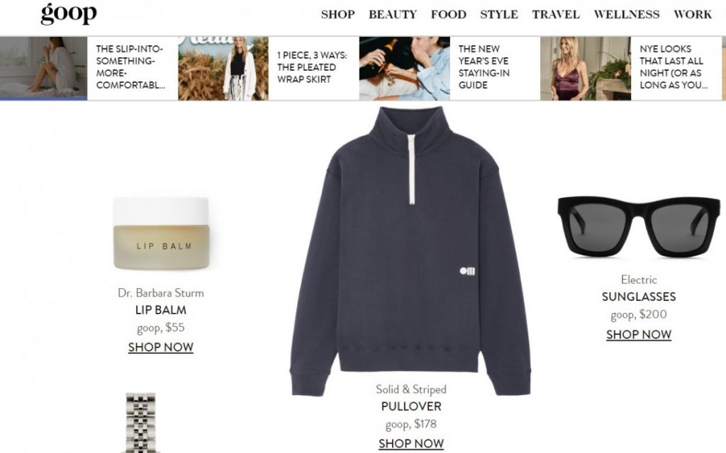 A screengrab from Goop's website.
