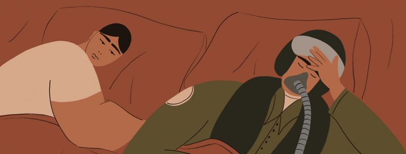 Then there was the unspoken shame of getting into bed next to my wife and tethering myself to this breathing machine with what looked like a ribbed hairdryer hose. She tried to put a bright spin on the situation.