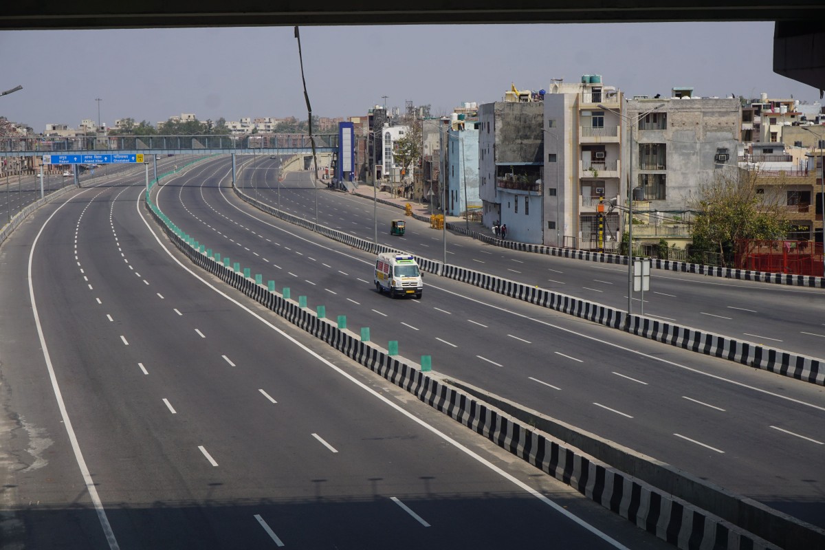 An ambulance rushes at NH24 on Janata Curfew Day. Photo: Shome Basu