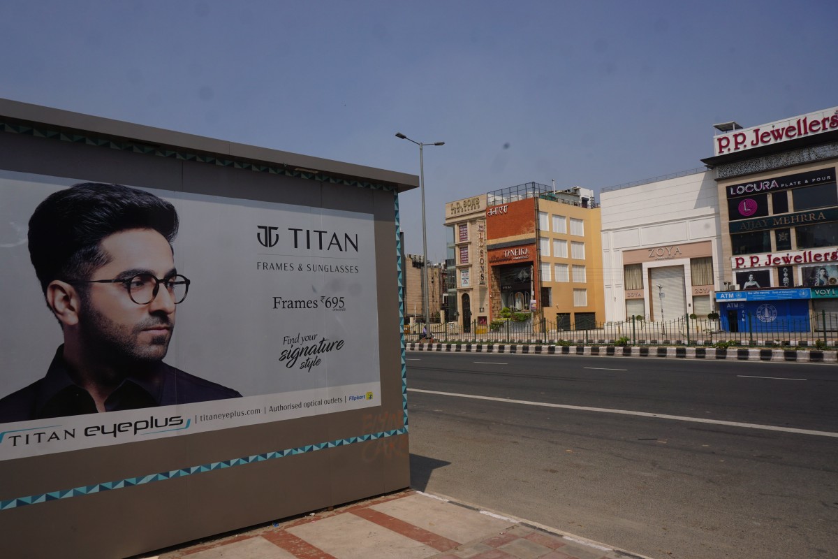 Hoarding to sensitise citizens about COVID-19 on an empty Delhi road. Photo: Shome Basu