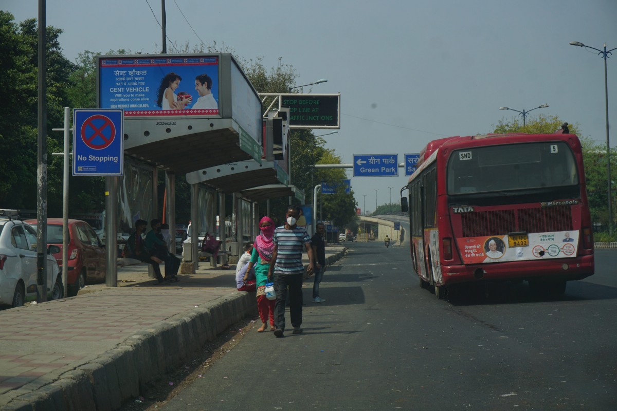 A lone woman ragpicker walks the Delhi-Noida Direct flyway on the day of Janata Curfew. Photo: Shome Basu