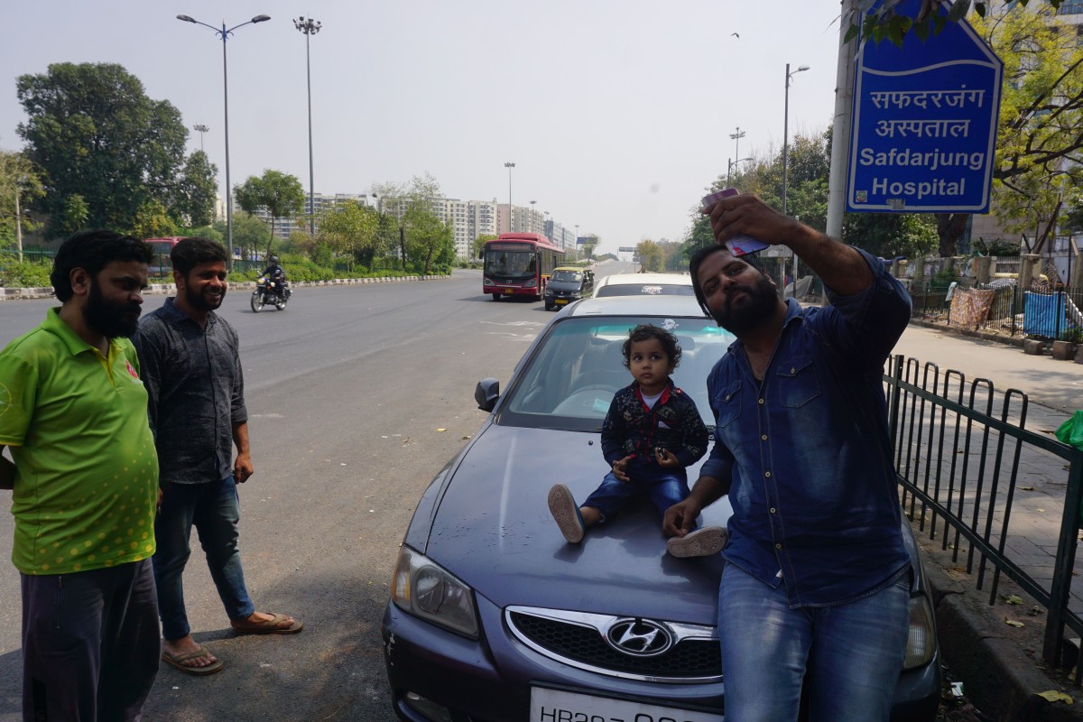 Commuters taking selfies on an empty Ring Road. Photo: Shome Basu