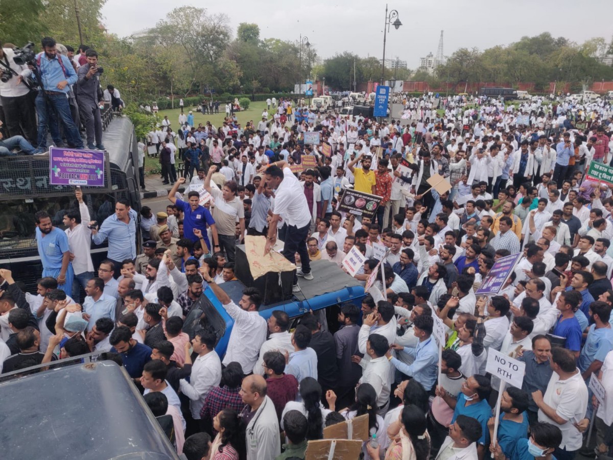 Doctors in Rajasthan, mostly those who work in the private sector, have been protesting against the Bill. Photo: Twitter/@FordaIndia
