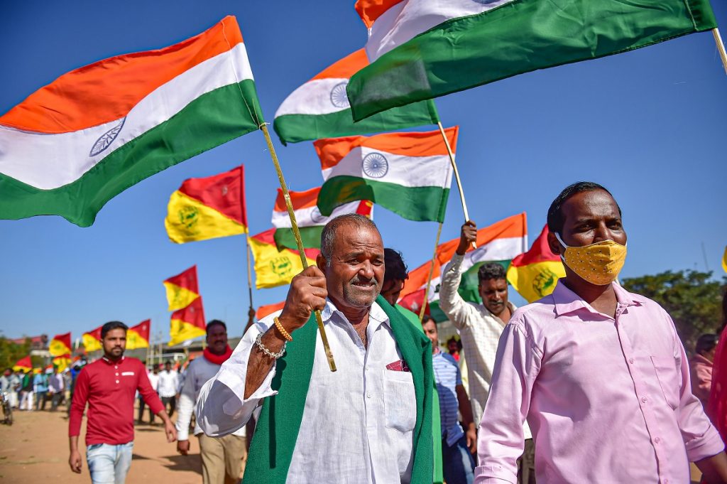 In September 2020, Modi’s government passed the three controversial farm Bills that were later signed into law by the president. His regime threw the Indian constitution and its promises of federalism out of the window by legislating on agriculture, a state subject that can be regulated and legislated only by India’s states, and not by its Union government. These three laws pushed Indian farming into the free market – a euphemism that doesn’t capture any of the devastating consequences. The price of procurement of farm produce – no longer at floor prices fixed by the state, or the mandi system – would be directly fixed by private players, who could hoard even essential produce leading to massive inflation, taking away the fig leaf of food security.