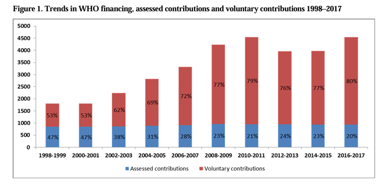 In addition to this, the WHO receives ‘voluntary funds’ in the form of extra-budgetary funds (EBFs) from various development agencies, charities and private philanthropies, NGOs and other UN agencies.