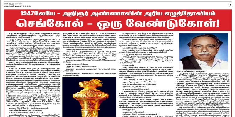 The original article in Dravida Nadu, titled "Sengol: Oru Vendugol" (Sengol: A Request). Photo: V. Geetha