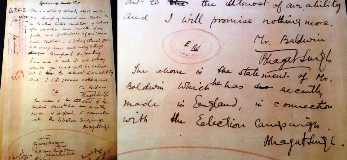 Bhagat Singh signature specimen from Punjab Archives, Lahore. Photo: Ammara Ahmad