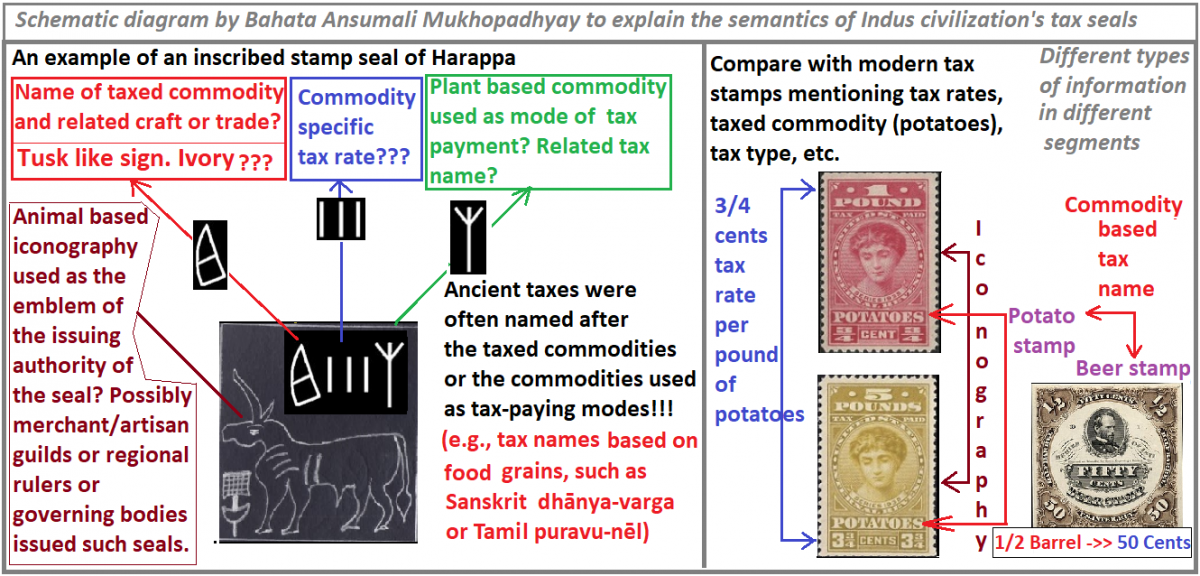 In the Localisation Era ( after 1900 BCE to 1300 BCE), when the decline of Indus economico-political units happened (for contentious reasons), it wiped out Indus valley civilisation’s large-scale organised trade, and related taxation and trade-controlling devices, such as seals, tablets, and standardised cubical weights. This can be compared to the demise of the inscribed “Bala” taxation tablets of ancient Mesopotamia, which disappeared after the UR state and its taxation system dissolved under the attack of the “Martu” tribes. Interestingly, the tax collection system and use of tax-seals mentioned in Kautilya's Arthaśāstra of 400 BC have various similarities with the Indus taxation system reconstructed from archaeological and script-internal evidence, and arguably have an ancient Indus root, which got much more advanced, customised, and canonised by the Mauryan period.