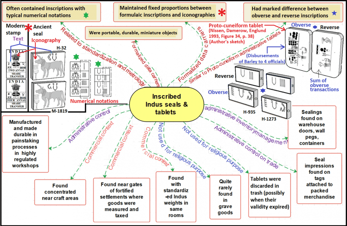 An infographic summary of evidences that Indus seals and tablets were formalized data carriers used in commercial contexts where trade-control, standardisation and metrology played important roles.