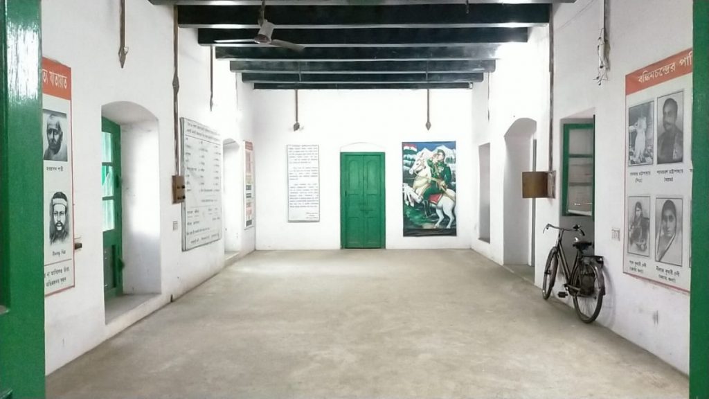 The building, which is now painted every year, has two floors. The ground floor contains a photo gallery spreading over two rooms, containing oil paintings of Bankim Chandra and his wife, photos of his family members, photos of notable contemporaries of Bakim who visited this place, and a list of his published books, with the year of publication and persons they were dedicated to. An easy chair that Bankim used has also been kept.