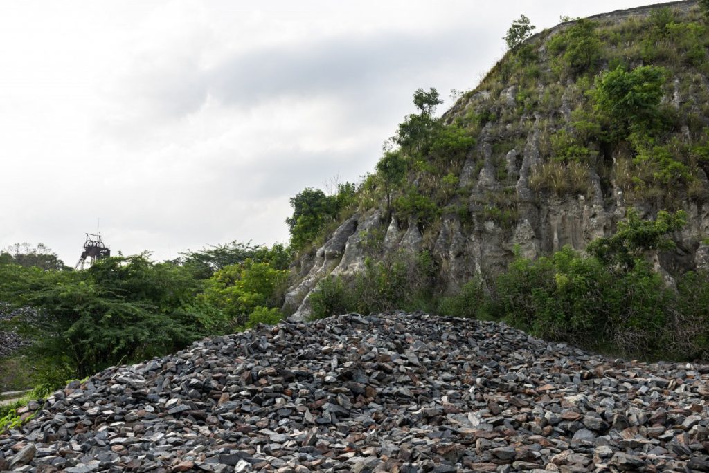 The Vocational Training Institute, established in 1899, now addresses the triangular message of ‘knowledge, caution and discipline’ to adjoining buildings, equally deserted except for a few puppies. Robbed of its windows and doors and now protected by bramble, it allows the glimpse of an accident chart; a record of tragedies which occurred in the mine.