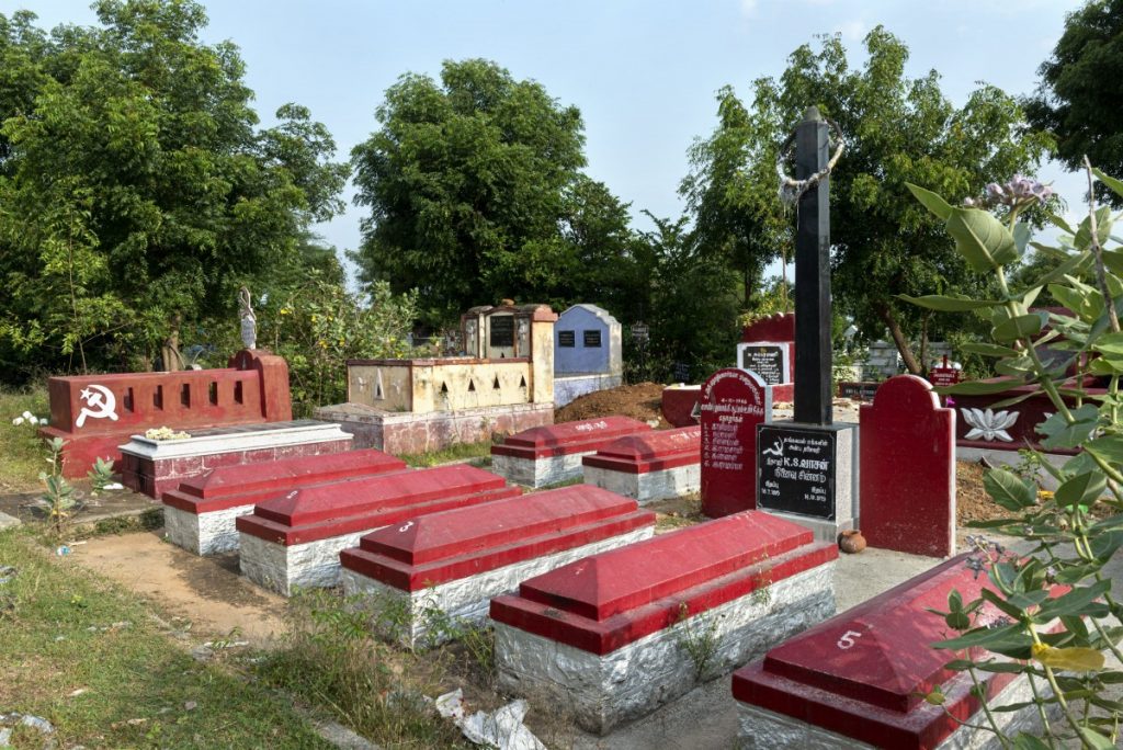 A section of the Rogers’ Camp graveyard which commemorates Communist leaders and workers of the area, including the six who fell to police firing in 1946: Kanniappan, Subramani, Chinnappan, Ramaswamy, Kannan and Ramaiah. Photo: Clare Arni.