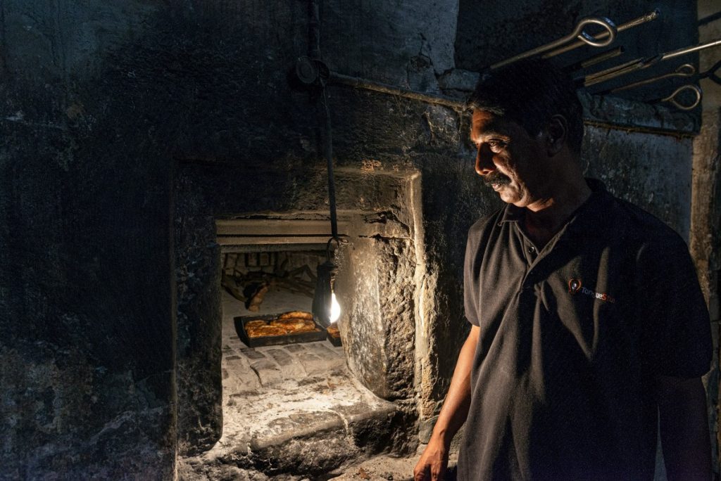 An imperial bakery, in existence since 1880, sells its famous dilpasand as ‘muffins’ to preserve, in name at least, the aura of Anglo-Indian culinary cultures. Its ancient wood-fired stove remains useful, producing from its dark belly the magical warm, textured mouthfuls of pastry and coconut, a lingering pleasure. The current owner, Ismail, has proudly hung his grandfather’s picture over the entrance to the oven.