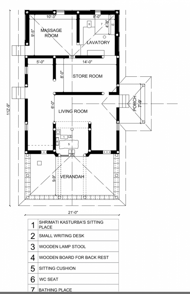 Plan of Bapu Kuti. Photo credit: Reproduction by LA: Journal of Landscape Architecture