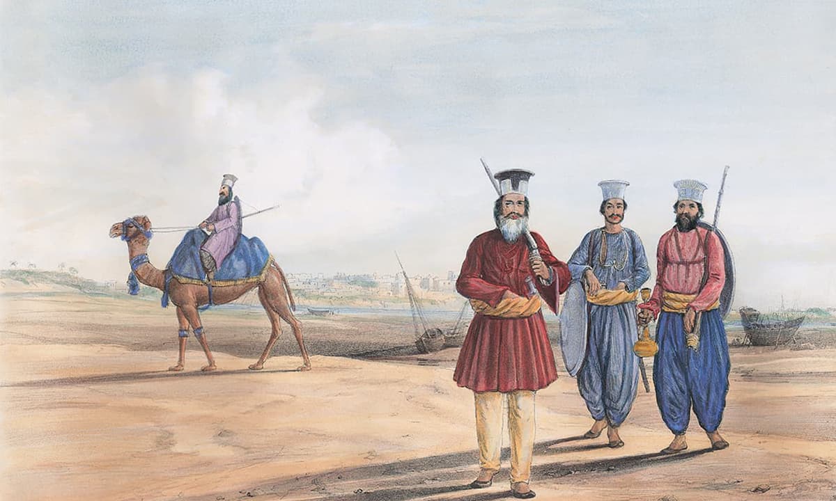 A lithograph of a Sindhi man and his attendants by James Atkinson. Credit: Karachi under the Raj 1843-1947