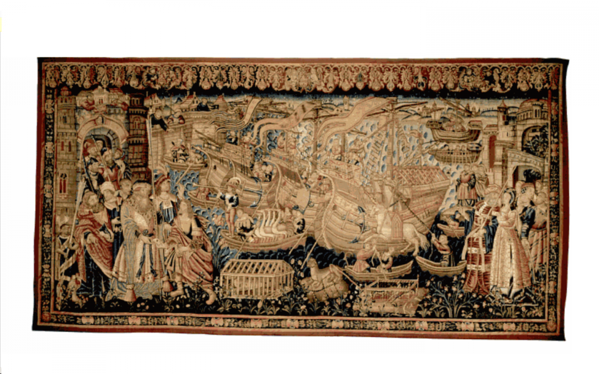 ‘The Voyage to Calicut’ – from a sixteenth-century tapestry illustrating Vasco da Gama’s departure from Portugal and arrival at Calicut.
