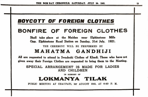 Appeal by Mahatma Gandhi to Boycott Foreign Clothes, India, Asia, July 30, 1921. © Jayan Mitra/Dinodia Photo