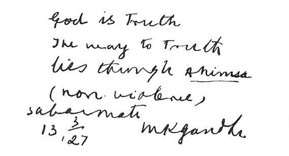 God is Truth quote by Mahatma Gandhi written in English, Gujarat, India, Asia, March 13, 1927. © Jayan Mitra/Dinodia Photo