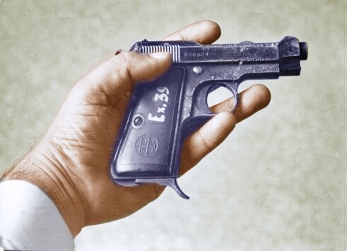 The gun used by Nathuram Godse to kill Mahatma Gandhi on January 30, 1948. © Jayan Mitra/Dinodia Photo
