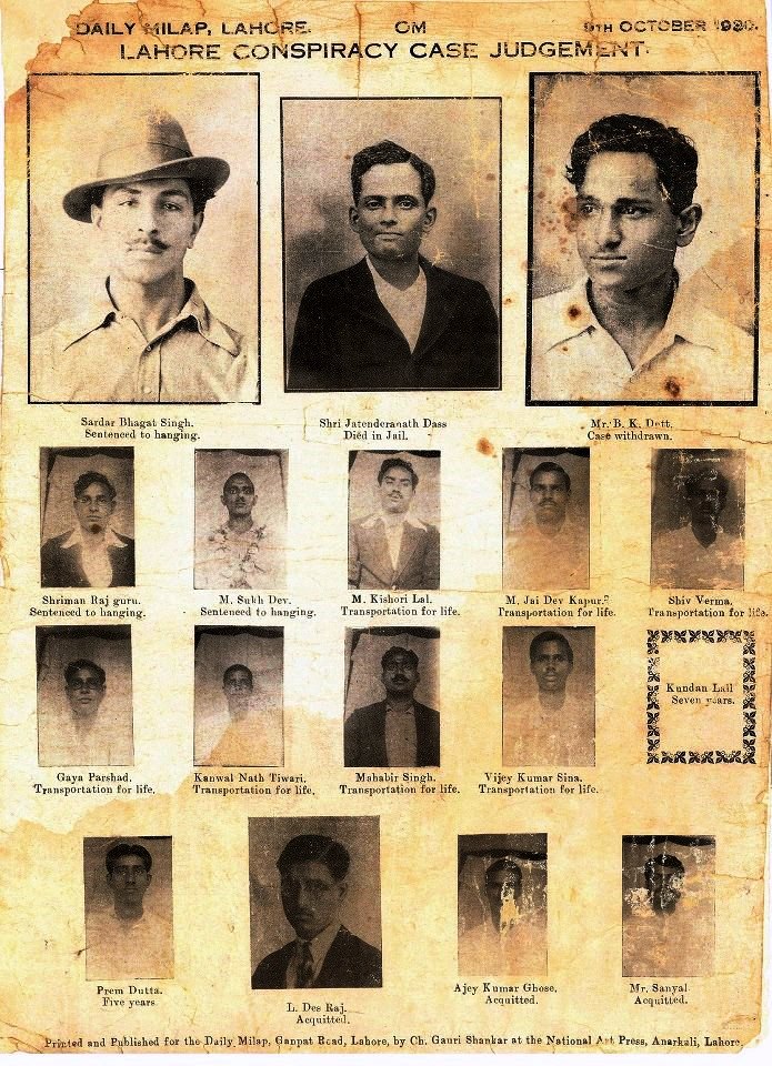 The Lahore conspiracy case poster on the Daily Milap. Both Premdatta Verma and Jatindranath Das can be seen in it. Photo: Chaman Lal
