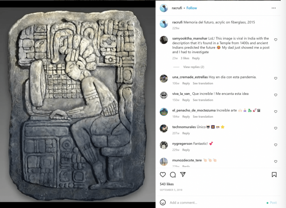 Artist Raúl Cruz is described as a freelance illustrator/fine artist on his About page on ArtStation. According to the page, Cruz’s work falls under the genre of Fantastic Art. Futurist aesthetics and science fiction combined with Mesoamerican art directly influenced his work, mixing the past and the present with unpredictable futures. This trait is clear in the artwork that is viral.