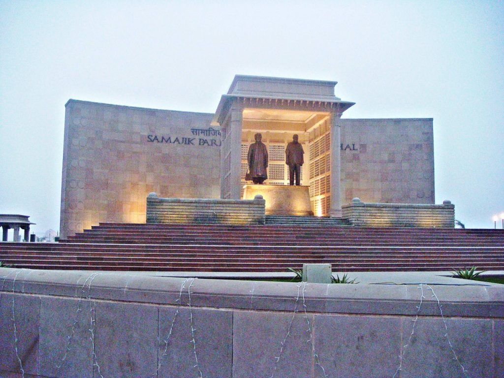 Statues of Mayawati and Kashni Ram at Ambedkar Memorial Park. Photo: Dralkamel/Wikimedia Commons CC BY-SA 4.0