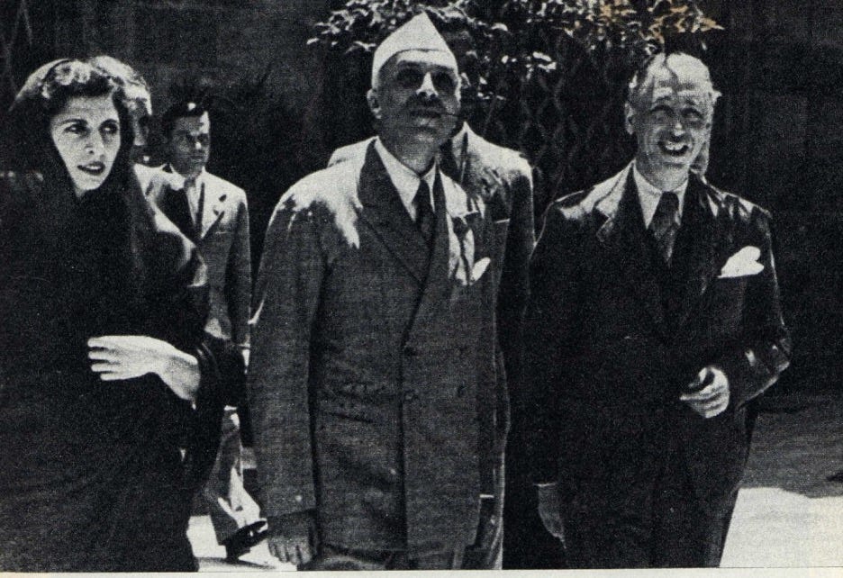 Jawaharlal Nehru in Spain during the Civil War, with his daughter Indira (l) and Catalan President Lluís Companys (r).
