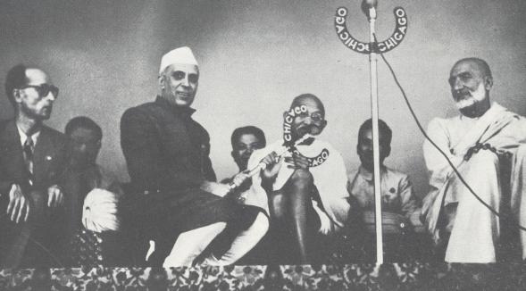 Jawaharlal Nehru, Gandhi and Abdul Ghaffar Khan at the Asian Relations Conference, Delhi.