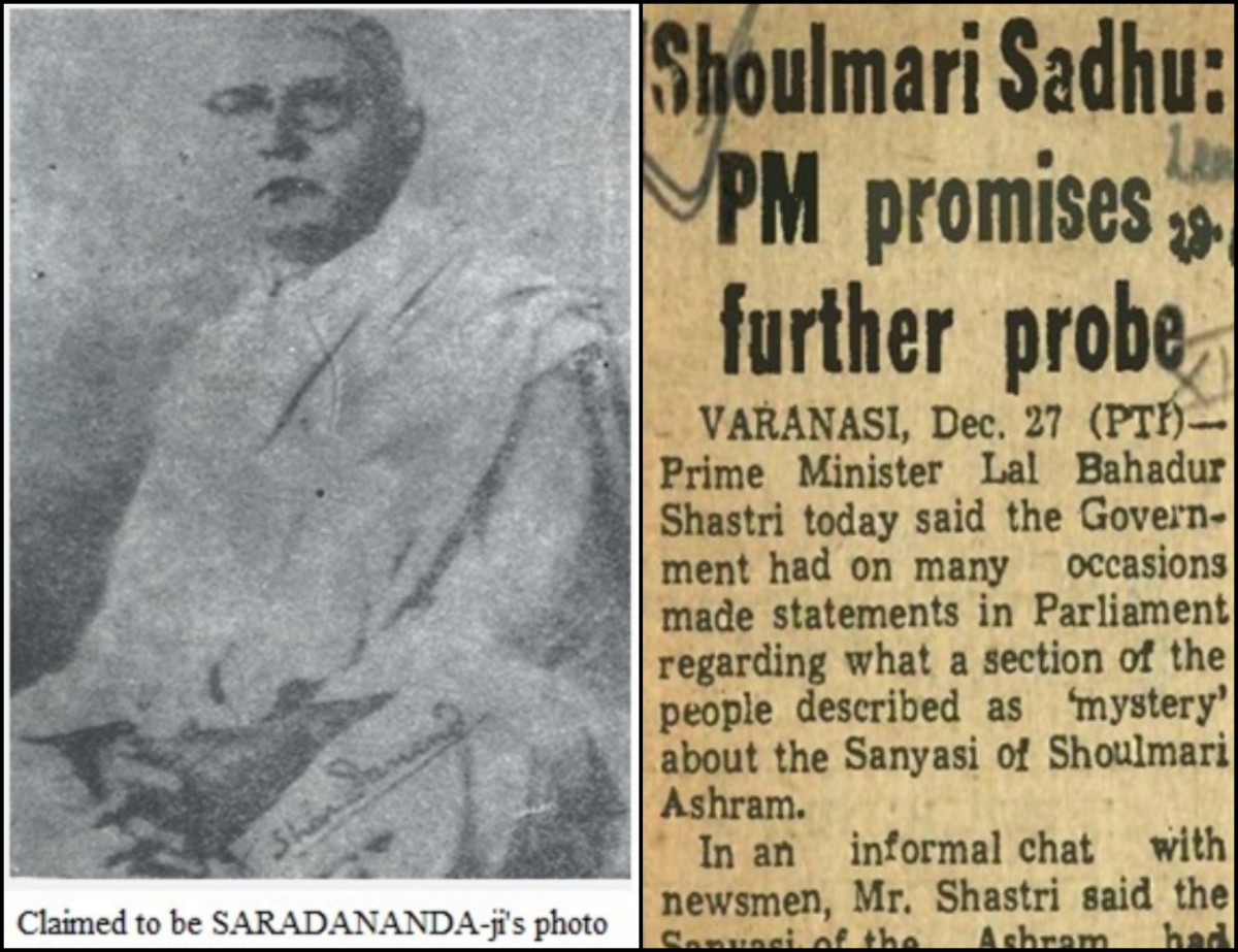 In 1959, a sadhu at Saulmari in Cooch Behar district of north West Bengal was probably the first to be canvassed as Netaji in disguise. His given name was Saradananda-ji, commonly known as Saulmari sadhu. The belief and inquisitiveness of a large number of people became so strong that in early-60s the central government was forced to send an investigation team to find out the truth. Though the Sadhu himself declared in the latter half of the 60s that he was not Netaji, his followers continued to insist that he was none other than Netaji himself. In 1973, the sadhu reportedly shifted base to Dehradun, where he died in 1977.