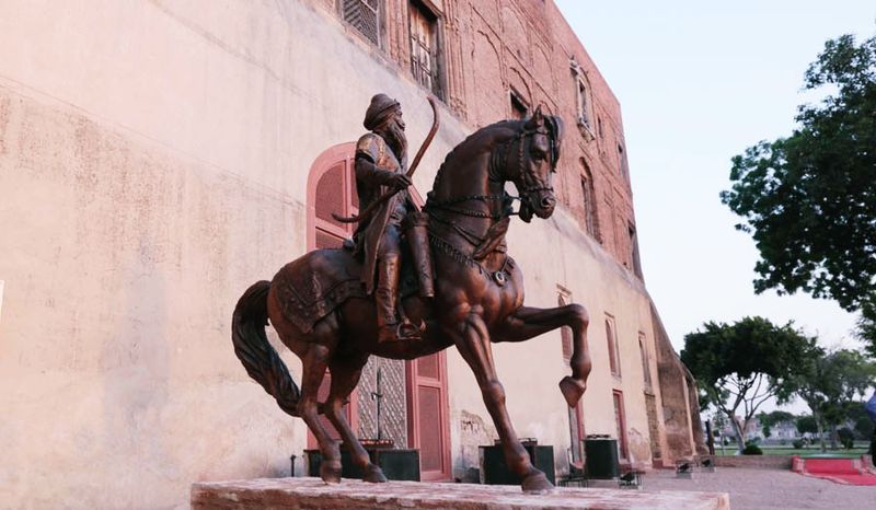 Statue of Maharaja Ranjit Singh inside the Lahore Fort. Photo: Twitter