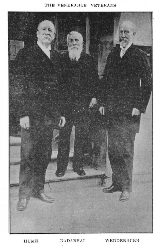 A.O. Hume, Dadabhai Naoroji and William Wedderburn. Photo: Twitter/@INCinHistory.