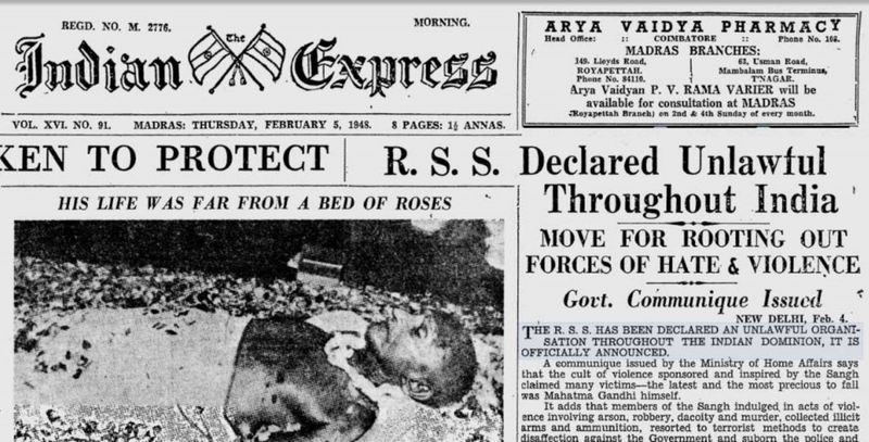 "There is no doubt in my mind that the extreme section of the Hindu Mahasabha was involved in the conspiracy [to kill Gandhi]. The activities of the RSS constituted a clear threat to the existence of Government and the State. Our reports show that those activities, despite the ban, have not died down. Indeed, as time has marched on, the RSS circles are becoming more defiant and are indulging in their subversive activities in an increasing measure."