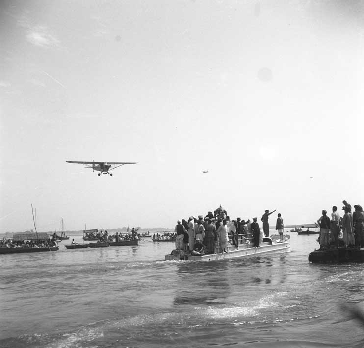 Photograph taken on the occasion of the final immersion ceremony of the ashes of Mahatma Gandhi at Allahabad on February 12, 1948. Credit: Photo Division, GOI