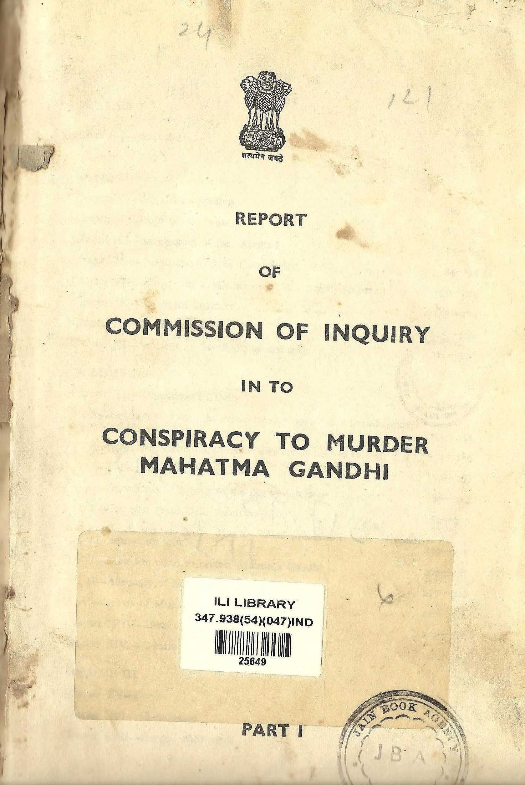 Cover of the Jeevan Lal Kapur Commission of Inquiry report.