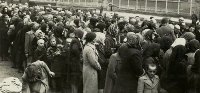 Lili Jacob, a former Auschwitz inmate, was transferred to Dora Mittelbau in April 1945. She discovered a photo album. The majority of the photographs in the album were taken on the day she arrived at Auschwitz-Birkenau in May 1944. She recognised her murdered brothers, Israel (9) and Zelig (11), as well as many other members of her family, including her grandparents, Aunt Tauba, and four of her children, and a photo of Lili herself, with her head shaved.
