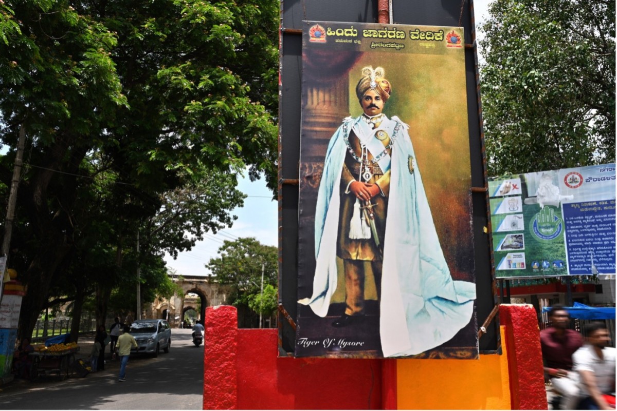 Changing the narrative: Poster of the Hindu Jagaran Vedike adjoining Jumma Masjid, that declares Krishna Raja Wodeyar IV the ‘Tiger of Mysore’. Photo: Clare Arni
