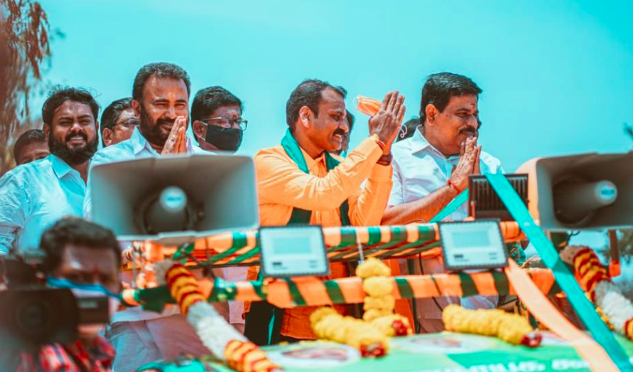 BJP leaders campaign ahead of the TN election. Photo: Twitter/@BJP4Tamilnadu