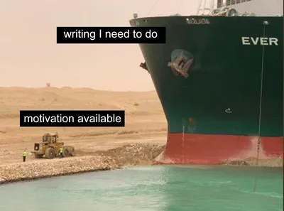And the memes filled the internet like cargo ships piling up in the Red Sea. Many of the most popular touched on the angst of the last pandemic-filled year; one labelled the hulking ship "my COVID depression & anxiety" and the tiny digger on shore as "going on a daily walk".
