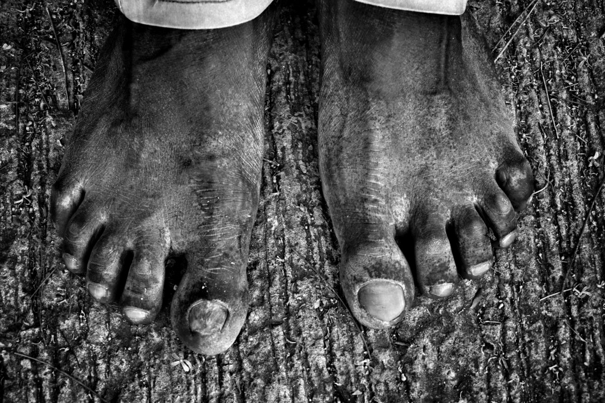 A migrant workers' scarred feet. Photo: Shome Basu