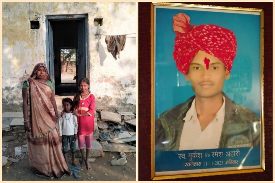Bagaria’s daughter-in-law Renuka Ahari said her two children, nine and ten years old, had been out of school for two years. Their inability to pay Rs 15,000 in outstanding fees after her husband Mukesh’s death has led to a deadlock. The private school the children were in refused to issue a transfer certificate, while the government school won't admit the children without it. It is only in this July, after receiving compensation of Rs 2 lakh under the Rajasthan Pneumoconiosis Policy, that they were able rejoin classes.