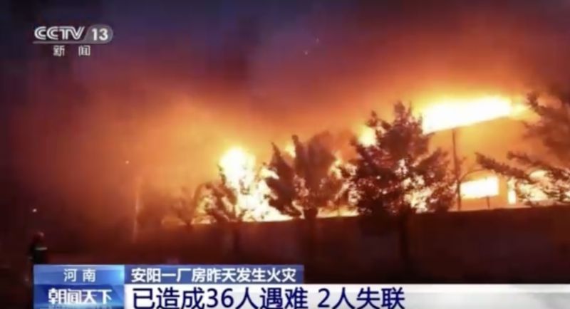 China: Factory Fire Kills 36 in Henan Province 'High-Tech Zone'