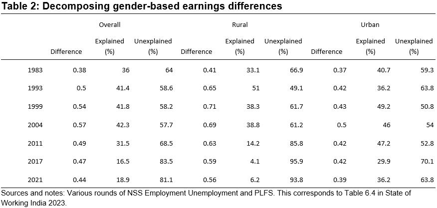 The larger conclusion is worth emphasising. The same period that saw a rapid rise in regular wage work among women also saw an increase in the unexplained part of the gender wage gap, usually attributed to discrimination.