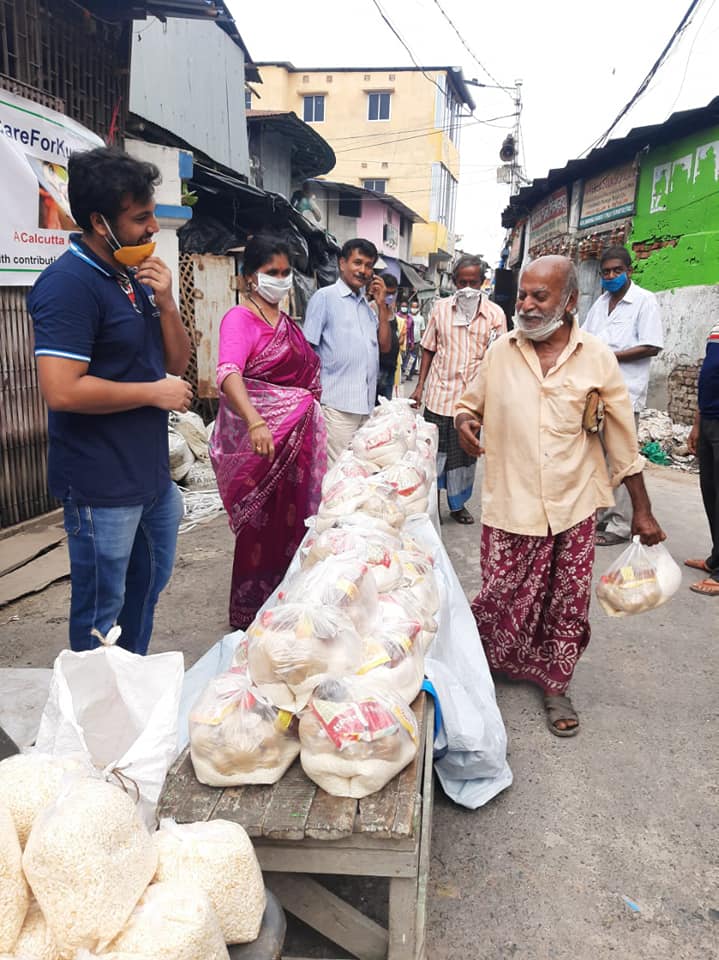 To help themselves get through this hard time, the artisans and studio owners of Kumartuli have combined their resources to set up two communal kitchens, each of which provides 100 people with their daily meals.