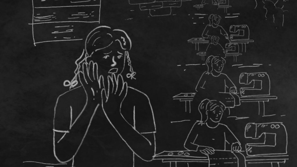 “If a single tailor fails to meet her goal, the male managers either do not allow the other workers to leave until the tailor completes her target, or leave her behind in the factory, or threaten her with forceful termination,” says Kavita.