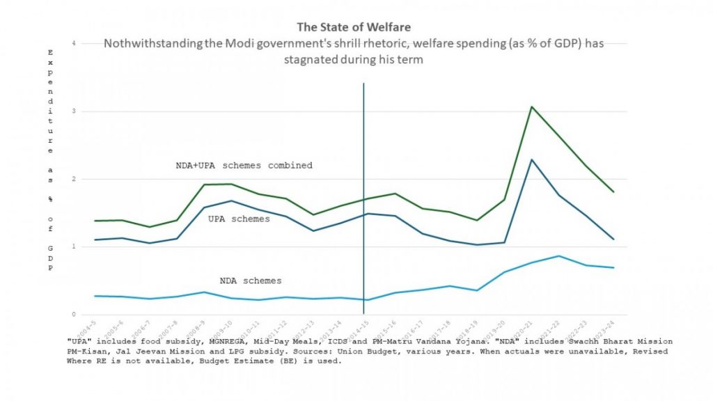 Khera and Drèze said that the carefully constructed reputation of the Modi government as a big welfare spender doesn’t stand up to scrutiny.