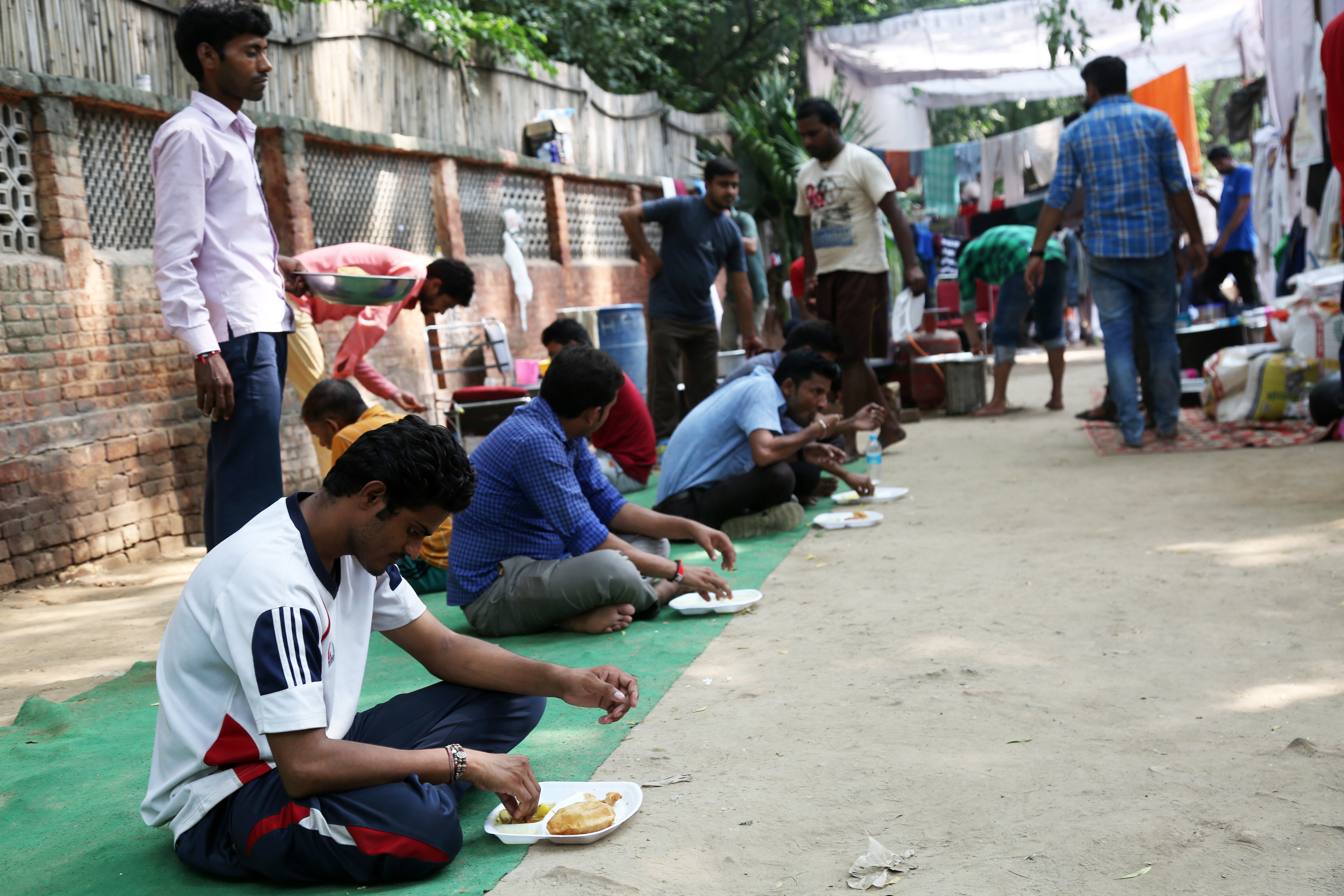 Lunch being served at the community kitchen, an effort funded by workers, activists, unions, and students. Credit: Hina Fathima
