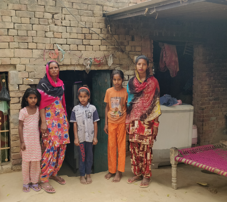 Neelam with her daughters in her village in Aklia, Punjab. Photo: Vivek Gupta