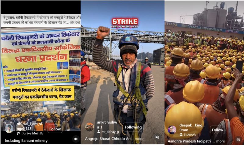 We can find them posting about the pride of coming to work in a reputed factory or longing for the family left behind in the village set to hypnotic Jai Sree Ram beats. News of the struggle at IOCL Panipat and Adani Power in Madhya Pradesh’s Singrauli also spread through reels made by the workers themselves. This inspired workers across the energy sector, who were already angry with their contractors and employers. In some cases, the protests were triggered through industrial accidents and the management’s attempt to cover up deaths or injuries.